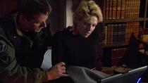 L'épisode a également représenté un défi quelque peu intimidant pour James Robbins et le département artistique. Après tout, la zone dans laquelle Carter est blessée est censée être "déphasée" - et comment illustrer l'invisibilité à l'écran ? "C'était un sacré changement", révèle James Robbins. "L'histoire du clavier de Merlin - que nous avons découvert plus tôt - met les choses en déphasage. Dans l'histoire, cela se retourne contre nous et seule une partie d'un bâtiment, où Carter est blessé par Mitchell, est déphasée. Nous avons donc discuté de la manière dont nous allions y parvenir, qu'il s'agisse d'un effet visuel ou non. En fin de compte, nous avons fait ce qui était le plus logique : nous avons fait disparaître le bâtiment ! Nous avons construit une pièce, puis nous avons enlevé tous les murs et construit de petites sections qui présentaient des découpes à travers les murs, indiquant le bord du champ de force dans lequel ils étaient retenus. Nous avons donc construit le tout, tourné tous les intérieurs, puis ils sont partis tourner d'autres choses sur d'autres scènes. À leur retour, nous avons détruit le bâtiment et laissé les traces derrière nous pour toutes les scènes où ils étaient déphasés. C'était assez amusant. Pourquoi tricher quand on peut avoir la vraie chose ?"