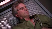 [00:21] - Les techniciens du faux SGC touchent le caisson de Jack sans protection alors qu'il sort d'un liquide cryogénique.
