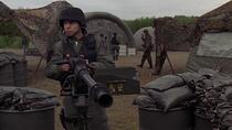 "L'un des aspects les plus intéressants de "Règles de combat" est qu'il m'a permis de retrouver ma jeunesse et de m'ébattre comme un enfant", déclare Christopher Judge en riant. "J'ai vraiment aimé cet épisode. Nous avions tous ces jeunes qui couraient partout. Nous avons eu l'occasion de faire beaucoup de combats avec Rick et c'est son truc, se rouler dans la boue et faire toutes ce genre de choses d'action. C'était génial de le voir jouer un rôle aussi actif, et parce qu'il s'est littéralement jeté à l'eau, tout le monde en a fait autant. Je me souviens d'un jour où il pleuvait et où nous devions courir et plonger dans la terre, qui était maintenant très boueuse. Rick et moi nous sommes tournés l'un vers l'autre et avons dit : "C'est la meilleure journée que nous ayons eue de toute la saison". Exagérant légèrement, Judge sourit : "Nous étions deux vieux gars qui étaient redevenus des enfants, alors à cet égard, c'était un épisode formidable. Jouer les soldats et faire tourner en bourrique les costumières et les maquilleuses parce qu'on était si sales, c'était formidable". La publiciste Kim Cowan peut témoigner de l'état dans lequel ils se trouvaient - elle a des preuves photographiques accrochées au mur de son bureau. Mais, bien sûr, c'est confidentiel !