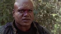 [16:34] - Au moment où Teal'c et Nyan entrent dans la grotte, on peut voir qu'il n'y a aucun écusson sur la veste du Jaffa, alors que ces derniers apparaissent au début et à la fin de l'épisode.