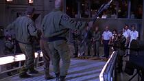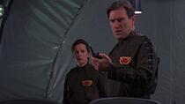 [09:00] - Lorsque le colonel O'Neill passe devant l'écran, on peut voir une bande qui masque le dessus de sa tête.
