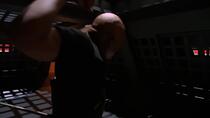 [35:00] - On peut voir clairement le bout de la perche de son passer au-dessus de la tête du colonel O'Neill. De plus, on peut voir une mine tobienne passée à travers la coque du vaisseau, probablement dû au reflet du fond vert sur le décor.