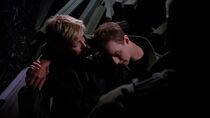 [15:18] - Au moment où le major Carter se relève en portant le lieutenant Elliot, on peut voir les débris des couloirs tok'ras en mousse bouger derrière elle.