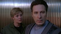 Pour Amanda Tapping, 'Traquenard' n'avait qu'un seul but : le syndrome de la veuve noire de Carter frappe à nouveau ! Il s'agit d'un nouvel épisode où elle perd un homme. "Oh mon Dieu, oui", gémit-elle. "Pauvre Narim." Soupirant sur le fait que ce malheureux n'a pas fait de mal à une âme, elle dit : "Je l'aimais bien, mais je dois vous demander de rappeler aux gens que je ne l'ai pas fait disparaître ! Et je me sens très mal que Schrödinger (le chat) ait été sur cette planète lorsqu'elle a explosé. Vous savez, perdre un ami, c'est déjà grave, mais en perdre deux, c'est carrément imprudent. C'était vraiment très imprudent de ma part. Non seulement j'ai perdu un de mes petits amis, mais j'ai aussi perdu mon animal de compagnie ! Je ne sais pas quoi dire. Le pauvre Narim faisait de son mieux."