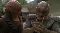 Comme s'il n'avait pas assez à faire en écrivant et en réalisant l'épisode et en taquinant les directeurs de la photographie, DeLuise a pris sur lui d'inventer une nouvelle langue. "J'ai créé un dictionnaire Unas, disponible sur le site de Kate Ritter. Elle l'a intégré à son lexique. Il y a environ vingt-cinq mots que j'ai inventés. J'ai essayé d'anticiper tous les mots dont ils auraient besoin, puis j'en ai ajouté quelques-uns pour qu'ils parlent une vraie langue. Les mots ont un sens. J'ai dit à Alex (Zahara) et Patrick (Currie) : "Vous devez dire les bons mots parce qu'il y a des gens qui vont dire 'Hé ! Ce n'est pas correct !' Bien sûr, au beau milieu de ces grands discours, Alex Zahara - Kor Asek - s'adressait aux troupes, puis se disait : "Aw ****. C'est quoi cette phrase déjà ?" Il prenait cette voix rude d'animal pendant une seconde, puis se mettait à parler d'une voix douce lorsqu'il n'arrivait pas à parler la langue des Unas - ce qui nous faisait tous craquer. C'était drôle d'entendre cette petite voix humaine sortir de ce grand Unas. Les bêtisiers sont vraiment géniaux. J'espère vraiment qu'un jour ils nous laisseront les mettre sur les DVD." Vous entendez MGM ! Les fans du monde entier attendent...
