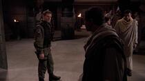 - Brad Wright ajouta dans une interview avec le Chicago Tribune à propos du nouveau personnage de Ben Browder : "C'est le pilote du F-302 (notre chasseur spatial de conception terrienne) qui a dirigé l'escadron qui a combattu Anubis en Antarctique. Il a été gravement blessé lorsque son chasseur s'est écrasé, il a failli être tué - mais on lui a promis une place dans le SG-1 s'il retrouvait sa forme de combat."