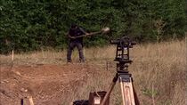 "C'est à peu près tout ce que McKay a de plus romantique - un bon coup de pioche dans un champ quelque part !" David Hewlett s'esclaffe et révèle que si le tournage sous le soleil de Vancouver a pu être bénéfique pour le réalisateur, pour lui, c'était une toute autre affaire. "C'était encore une fois très difficile à filmer, très honnêtement. Les tournages en extérieur sont des tueries. Certaines personnes les apprécient, mais je ne suis pas un grand amateur d'activités de plein air, j'en ai peur ! Mais c'était comme tourner Indiana Jones ! Je pense que pour moi, c'est très représentatif de l'ancien Stargate SG-1, où ils sont là à résoudre des énigmes et à essayer de trouver des choses avant que quelqu'un d'autre ne le fasse. Tout était bien imbriqué, et il y avait des choses vraiment très drôles".
