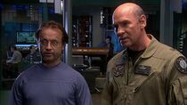 Bien qu'il y ait eu beaucoup d'action, l'une des intrigues "b" a été beaucoup plus calme, le Dr Weir ayant reçu l'ordre de revenir sur Terre pour se faire passer un savon par la CIS. "Ces moments ont été parmi mes préférés", admet Gero. "En tant que scénariste, vous avez la chance d'être entouré d'un acteur comme Beau Bridges, car vous savez qu'il sera capable de d'amener à bien votre projet. Il est vraiment capable d'incarner le commandant militaire sévère et la figure paternelle douce, et de passer facilement de l'un à l'autre. C'était difficile - ces scènes de la CIS dans les premiers épisodes sont un peu gênantes, dans le sens où il se passe tellement de choses et où le rythme de l'épisode est si rapide. Mais c'est un élément important de la série : il y a une bataille spatiale géante qui se déroule ! Mais du point de vue des personnages, c'était vraiment important. Nous savions que nous allions probablement utiliser Beau pendant quelques épisodes de la troisième saison, et le conflit pour le plaisir du conflit n'a jamais de sens. Donc si Beau devait avoir plus à faire avec la mission Atlantis, il fallait qu'ils enterrent la hache de guerre".