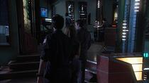 [30:02] - Lorsque le colonel Sheppard démagnétise les bottes du docteur Zelenka, on peut remarquer que les écritures sur la combinaison sont à l'envers, suggérant que le monteur a inversé le plan rapproché par rapport à ce qui a été filmé.