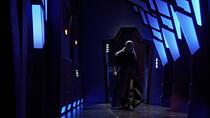 On dit souvent que le lieu où se déroule un épisode est un personnage supplémentaire de l'histoire, et c'est certainement le cas dans "Les Voyageurs". Comme l'a noté Mullie, la plupart des cultures visitées par l'équipe Atlantis sont nécessairement moins avancées technologiquement que l'équipe de la Terre, et sont aussi généralement basées sur des planètes. En faisant du peuple de Larrin une société vivant dans l'espace, Mullie a créé l'opportunité de voir quelque chose d'un peu différent. En plus de donner à Sheppard un coéquipier aussi doué que lui sur le plan technologique, ce qui permet d'établir une relation différente de celle que nous avons déjà vue avec le colonel, cela a également permis au département artistique de s'amuser un peu. "C'était une excuse pour construire un décor cool", admettent le scénariste, "et c'est la deuxième chose qui me vient à l'esprit à propos de cet épisode. Le décor du vaisseau des Voyageurs est l'un de mes préférés. Il s'agissait en fait d'un simple couloir avec une petite pièce à une extrémité (la cellule) et une pièce plus grande à l'autre (la pièce où Sheppard rencontre Larrin et lui parle). En fait, si je ne me trompe pas, il s'agissait d'une modification du décor construit à l'origine pour l'épisode 'Ames en détresse' de la troisième saison."