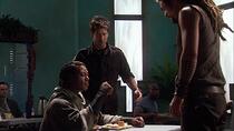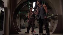 Bien entendu, l'un des points forts de cet épisode était la possibilité de voir ces deux personnages ensemble, mais aussi l'action qui s'ensuivrait lorsqu'ils se battraient - l'un contre l'autre, et l'un à côté de l'autre. Le coordinateur des cascades, James Bamford, s'est fait un plaisir de chorégraphier cette action. L'une des séquences de combat les plus spectaculaires est la scène d'entraînement au cours de laquelle les deux hommes s'affrontent - littéralement. "Le combat d'entraînement a été tourné d'une manière différente", explique Bamford (plus connu sous le nom de "BamBam" sur le plateau). "Andy Mikita l'a vu d'une manière spécifique, de la façon dont c'était écrit, en étant vu à travers la foule plutôt qu'en entrant directement dans la salle et en voyant le combat. En fait, ce n'est pas aussi long qu'il en a l'air. Tous les raccords le font paraître plus long qu'il ne l'est. Il se passait tellement de choses, les paris des spectateurs, le dialogue entre Sheppard et Carter, et puis le combat lui-même et ce qui se passait dans le combat. Nous voulions capturer la surenchère entre Ronon et Teal'c, essayer de donner une idée du nouveau qui remplace l'ancien et de l'attitude "je vais t'apprendre, petit garçon". C'est ce que j'ai essayé de faire".