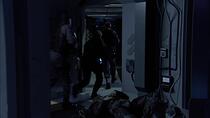 [14:05] - L'un des gardes de la porte de Pégase sort son arme avant que le premier Wraith ne soit arrivé.