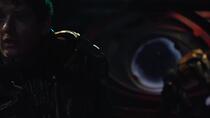 "Cet épisode était également très important d'un point de vue visuel : Perry fait demi-tour avec le Destiny et le ramène vers le vaisseau alien. Mais elle s'en approche trop et le percute, ce qui fait que le vaisseau commence à s'effondrer. Les nôtres n'ont pas de navette - ils ont dû enfiler des combinaisons spatiales et faire une sortie dans l'espace pour se rendre sur le vaisseau extraterrestre - alors comment ramener Young et Rush ? Les deux hommes doivent utiliser la force centrifuge du vaisseau et la synchroniser de façon à pouvoir s'élancer vers le Destiny. Je compare cela à l'épisode "Adrift" de Stargate Atlantis et à la sortie dans l'espace effectuée par Sheppard et Zelenka. C'est le genre de choses que nous avons fait entre les deux vaisseaux dans SGU. C'est une séquence phénoménale que Bam Bam [James Bamford, coordinateur des cascades de la série] et Wray Douglas [superviseur des effets spéciaux de la série] et leurs collaborateurs ont mis sur pied. Will Waring a réalisé l'épisode et a fait un travail formidable".