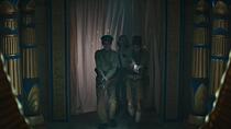 [00:04:58] - Lorsque Wasif se retrouve face à face avec Serqet, on peut voir que le jeune homme recule vers le mur. Or, sur le plan suivant, on aperçoit Serqet donner un coup de tête à Wasif en plein milieu des rideaux situés à côté d'eux.