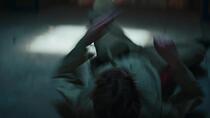 [00:06:23] - Tandis que Catherine tient le pied de Serqet et tente de la tirer vers elle, on aperçoit en arrière-plan James Beal remettre sa casquette. Mais sur le plan suivant, on le voit replacer sa casquette à l'endroit.