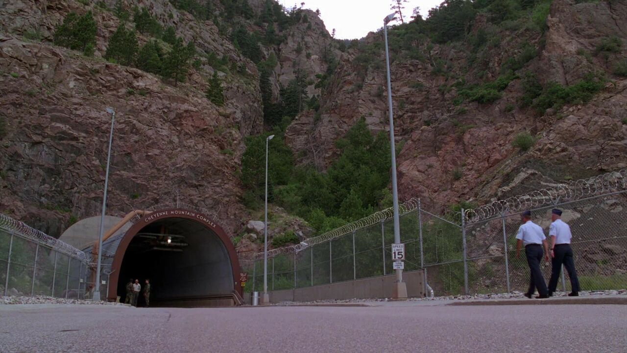 La base de Cheyenne Mountain a été construite en pleine guerre froide, durant les années 60, pour servir d'abri antiatomique. Les niveaux les plus bas, tenus secrets, ont même recueilli des plates-formes de lancement de missiles. Le complexe de 28 niveaux a été creusé sous la montagne. Il descend à plus de 600 mètres sous terre. Il est protégé par des portes blindées anti-souffle de 25 tonnes. La base est censée résister à une attaque nucléaire de cinq mégatonnes en cas d'explosion dans un rayon de cinq kilomètres. Son équipement électronique doit supporter les impulsions électromagnétiques produites par de telles attaques. Le complexe est également conçu pour devenir une base de confinement en cas de danger biologique, chimique ou en cas d'invasion intérieure provoquée par l'utilisation de la porte des étoiles au niveau 28.