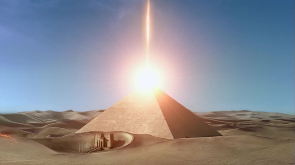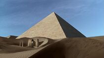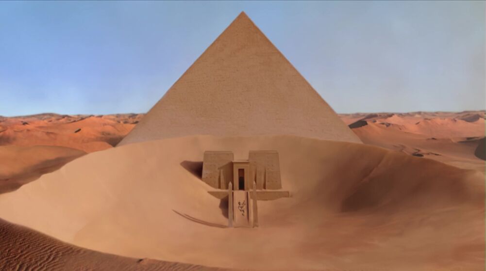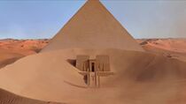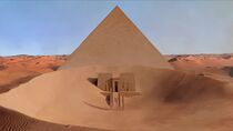 Située au beau milieu d'un immense désert de sable, cette pyramide est quasiment identique à celle du pharaon Khéops bâtie sur le plateau de Gizeh en Égypte. Néanmoins, contrairement aux pyramides égyptiennes, celle d'Abydos possède une entrée sous la forme de temple soutenu par des colonnes permettant d'accéder à l'intérieur de la structure. Cette entrée comporte également une rampe d'accès, ainsi que deux obélisques placés de chaque côté de cette dernière.