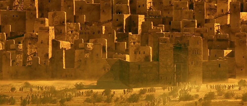 Dirigée par Kasuf, cette ville s'organise autour d'une artère principale surplombée d'un disque métallique frappé de l'Œil de Ra, rappelant le culte que les Abydossiens vouaient à cette divinité égyptienne. Toutefois, un réseau de galeries souterraines serpente sous la ville et abrite les derniers écrits du peuple abydossien, relatant notamment la véritable nature du dieu Ra, la déportation des habitants sur Abydos et la révolte des anciens Égyptiens.