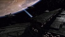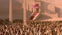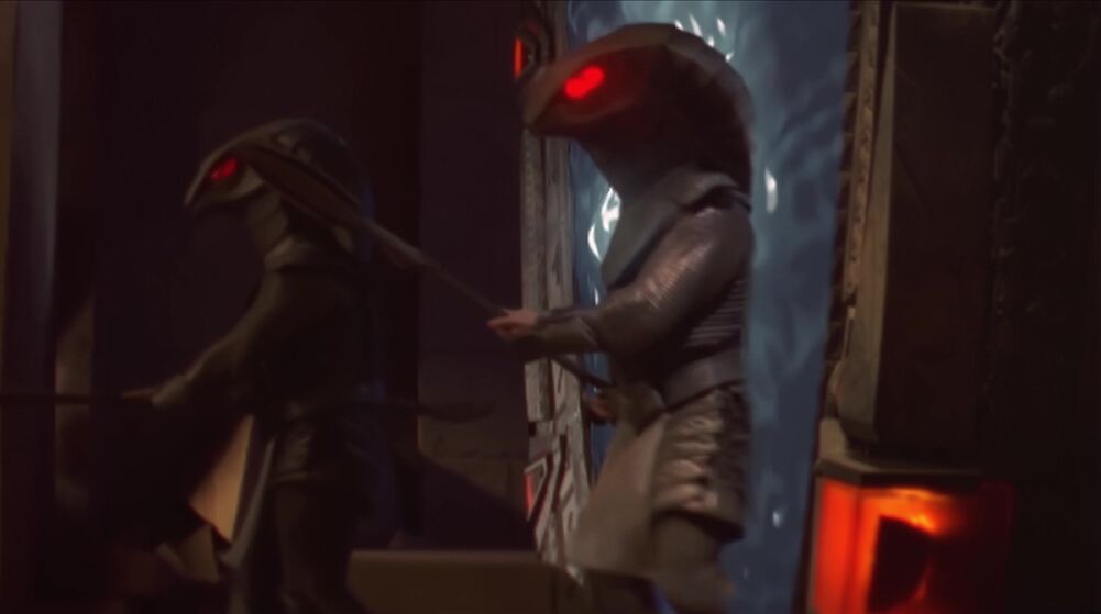 Pris au piège dans la chambre secrète de la pyramide, le colonel O'Neill plaça une charge de C-4 sur l'Œil de Ra et menaça Herak de le faire exploser si ses Jaffas venaient à lancer un assaut. Après avoir fait part des exigences des Terriens à son maître à bord de son vaisseau-mère, Anubis menaça de détruire entièrement Abydos si l'Œil de Ra ne lui était pas remis. C'est alors que le docteur Jackson apparut près d'Anubis pour l'empêcher de détruire la planète, mais une flotte composée d'une douzaine de vaisseaux de classe Ha'taks commandée par le seigneur Yu sortit de l'hyperespace et encercla le vaisseau-mère du Grand maître. Yu contacta alors Anubis pour lui demander de lui remettre l'Œil de Ra, sous peine d'être détruit par l'armada rassemblant les flottes de tous les Grands maîtres goa'ulds.