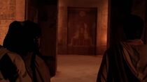 Après avoir fait la rencontre d'un abydossien appelé Kasuf, Catherine, James et Wasif furent conduits jusqu'à l'avant-poste de Nosdevli tandis qu'Aset envisagea de s'allier avec les Terriens dans le but de mener sa révolte contre le Grand maître Ra. Alors que Brücke montra à la déesse goa'uld un film vantant la puissance du IIIème Reich, Aset proposa de fournir du naquadah en échange d'esclaves terriens et d'un appui militaire contre Ra. Plus tard, la déesse emmena Brücke à l'avant-poste abydossien proche de son palais afin de lui montrer la fidélité et la force de ses serviteurs, prêts à se battre jusqu'à la mort pour elle. Toutefois, après une démonstration de force de la part de l'officier nazi, Kasuf conduisit Catherine jusqu'à une grotte située sous Nagada pour lui montrer les coordonnées de la Terre gravées dans la pierre.