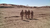 Toutefois, après avoir rencontré un étrange animal sur ce monde, celui-ci conduisit malgré lui l'équipe terrienne jusqu'à une mine de naquadah dans laquelle plusieurs centaines d'Abydossiens étaient forcés de travailler comme esclaves par le Grand maître Ra. Néanmoins, alors que Kasuf, le chef du peuple d'Abydos et père de Sha're et Skaara, conduisit la petite équipe terrienne jusqu'à la ville de Nagada, le Grand maître Ra revint sur Abydos à bord de son vaisseau-mère de classe Khéops et se posa au sommet de la grande pyramide. Entre-temps, le docteur Jackson noua une relation avec Sha're et fut alors capable de déchiffrer la langue du peuple d'Abydos et d'apprendre son histoire. L'archéologue découvrit également la véritable nature du dieu Ra, et une partie des coordonnées de retour vers la Terre.