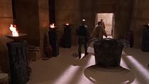 Néanmoins, quelques minutes plus tard, le vaisseau-amiral d'Anubis sortit de l'hyperespace et déploya notamment un transporteur de troupes escorté par plusieurs Al'keshs et planeurs de la mort afin de débarquer un grand nombre de Jaffas à la surface d'Abydos et ainsi récupérer le précieux joyau. Alors que Teal'c et les habitants d'Abydos furent rapidement submergés par le nombre de guerriers ennemis et se replièrent dans la pyramide, le docteur Jackson apparut pour aider le major Carter et Jonas Quinn à retrouver l'entrée d'une chambre secrète abritant l'Œil de Ra. Néanmoins, au moment où les deux membres de SG-1 et le docteur Jackson trouvèrent l'artefact goa'uld, ainsi qu'une tablette couverte de symboles anciens, les troupes d'Anubis commandées par Herak envahirent la pyramide, empêchant toute fuite par la porte des étoiles.